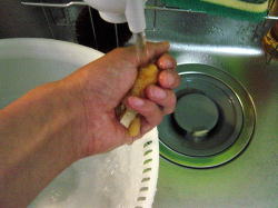 水をかけて手で握る数秒で解凍でき、油分も水で流れる。ともかくあっという間。