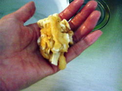 使いたい時に冷凍したまま、必要な分だけ手につかみ水をかけながら、ぎゅっとにぎって油分を出すだけ。